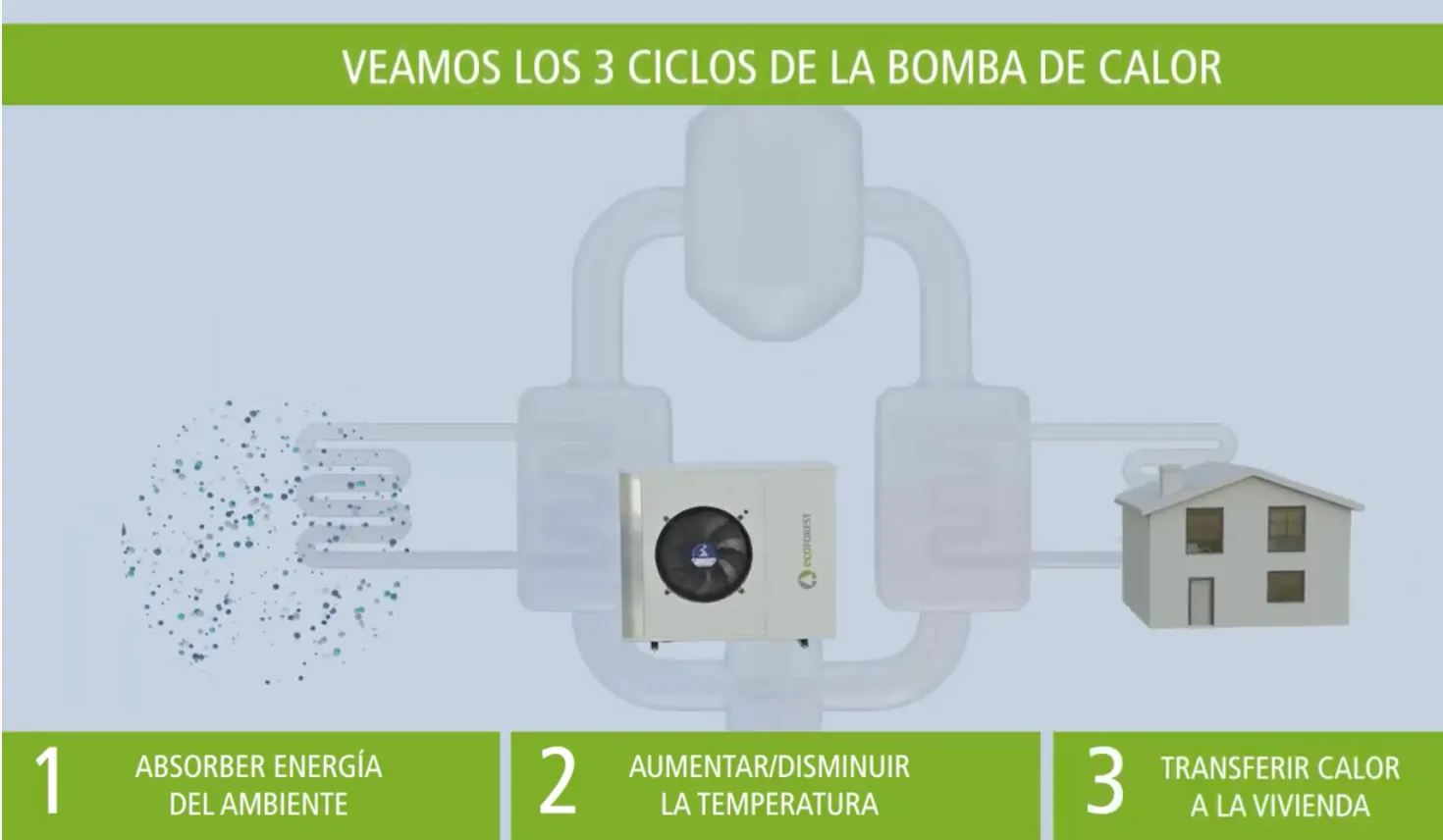 Este pequeno vídeo explica-lhe de uma forma simples o processo de transformação de energia de um sistema de aerotermia, a base de funcionamento de uma bomba de calor aerotérmica.